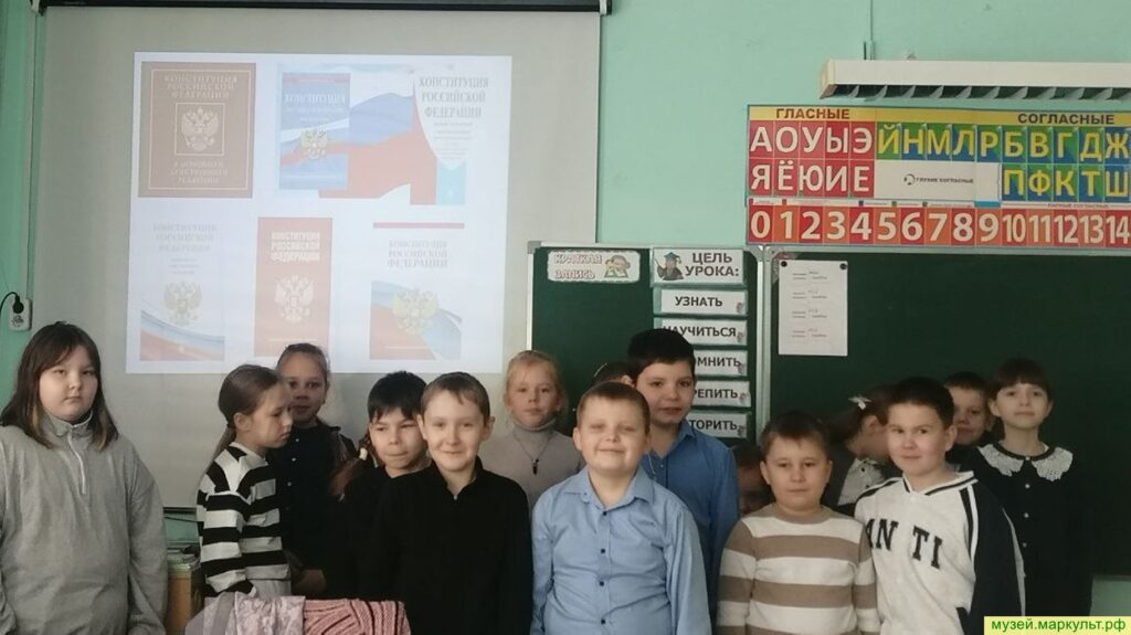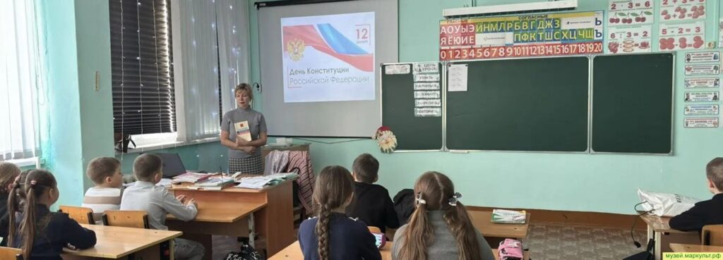 Ирина Сангатовна Горбатых для третьеклассников Марьяновской СОШ № 2 провела познавательную беседу-презентацию, доступно объяснив понятия «конституция», «государство», «закон» через визуальные материалы и диалоги.