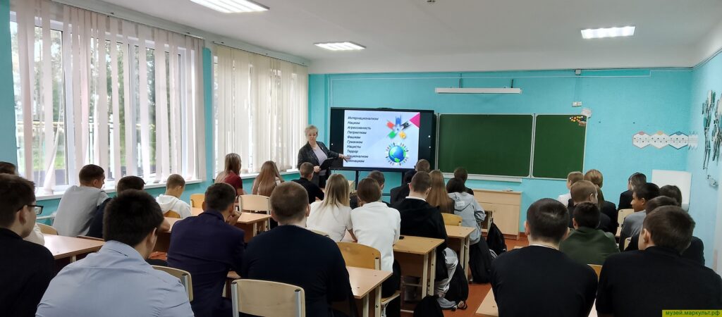 Накануне памятного дня для девятиклассников Марьяновской СОШ № 2 был проведён музейный урок-презентация. Основой разговора с подростками стали исторические факты преступлений и чудовищных злодеяний фашизма и нацизма на территории Европы и СССР. Конечно, разбирались и понятия «Нацизм», «Национализм», что несет с собой фашизм? Узнали, что об этом говорят люди, знающие о фашизме не понаслышке. Не сегодняшние политики, но известные люди ХХ века, видевшие последствия этой идеологии.