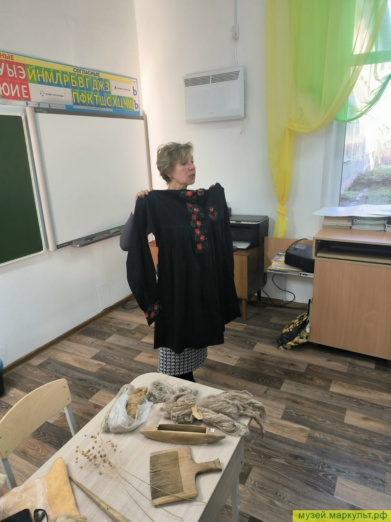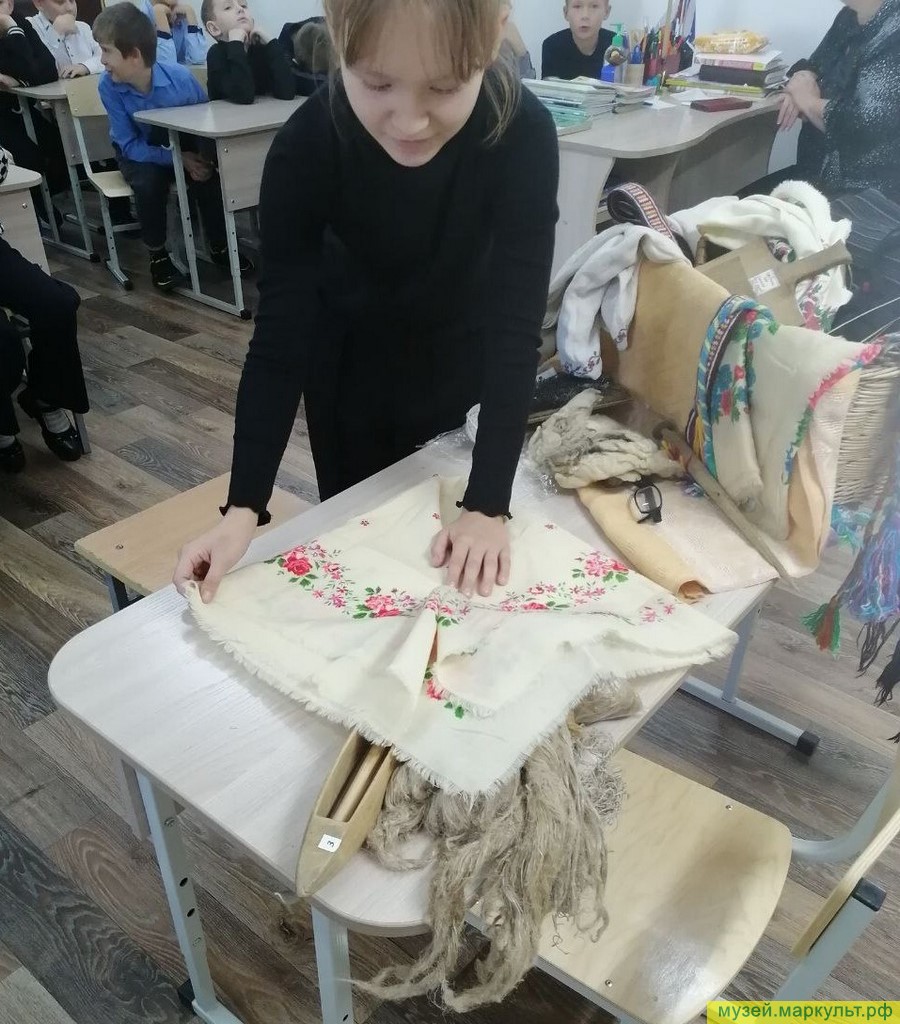 Для самых маленьких 1–4 классов Ирина Сангатовна Горбатых провела интерактивную беседу «Рассказы льняной нити», в ходе которой дети с удовольствием позировали, примеряя народные аксессуары.