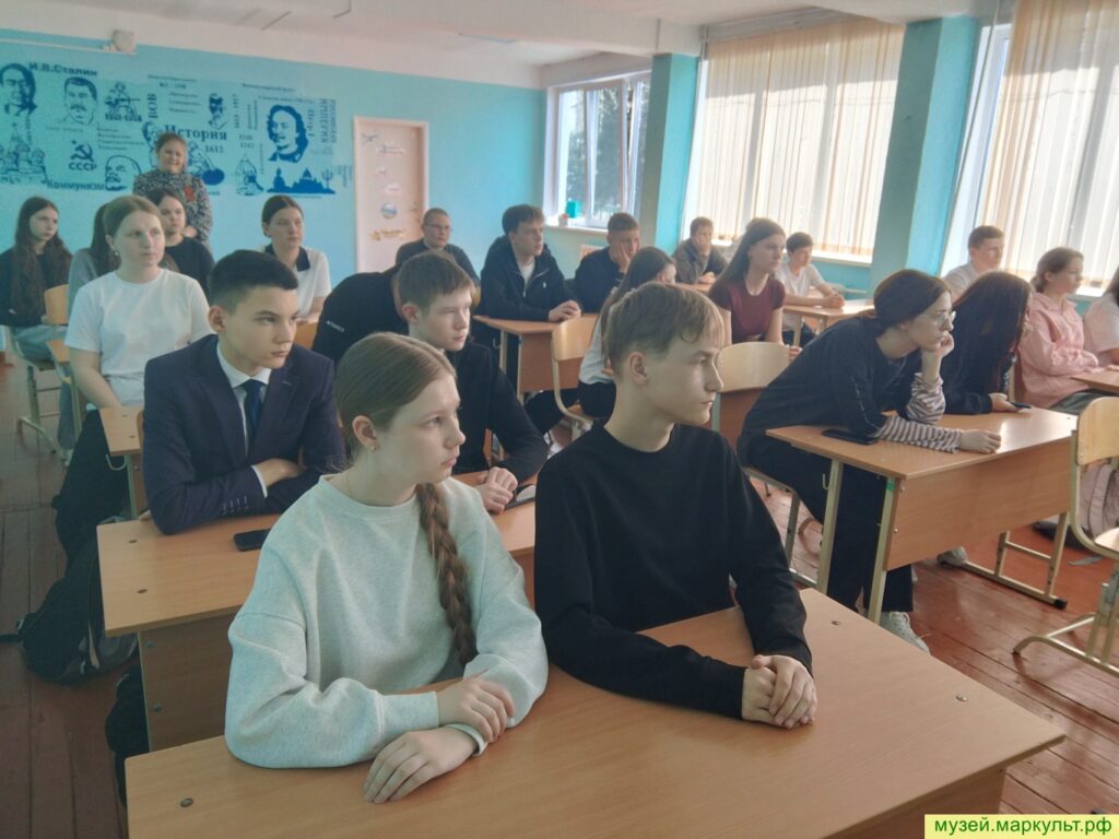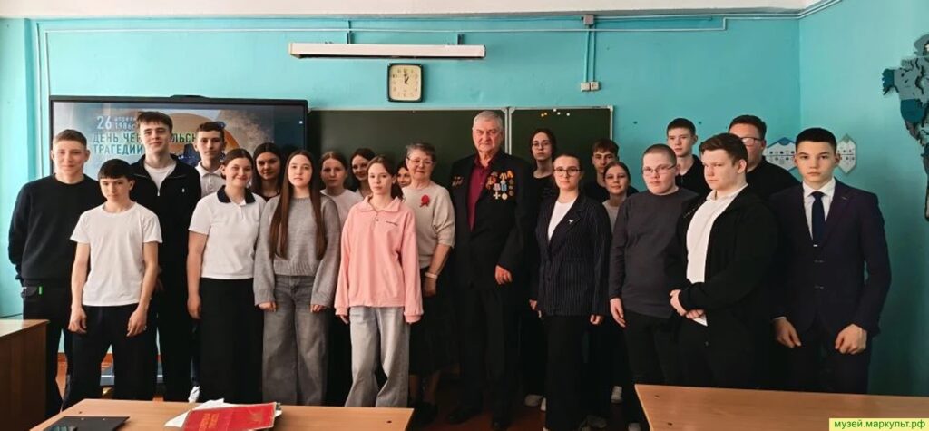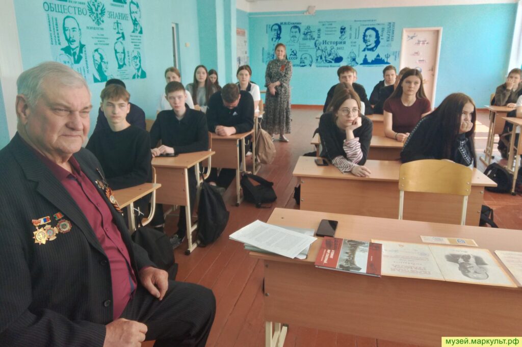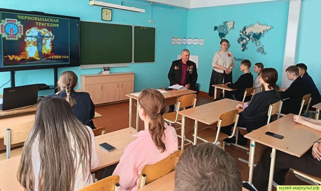 В Марьяновской СОШ №2 для учеников девятых классов прошла встреча, организованная Краеведческим музеем при поддержке советника школы Е.В. Бурлак. На мероприятии выступил Владимир Николаевич Комков — участник ликвидации последствий аварии на Чернобыльской АЭС.