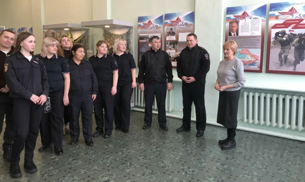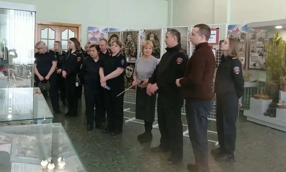 Одним из событий военно‑патриотического месячника в Краеведческом музее стала экскурсия для сотрудников ОМВД России по Марьяновскому району. В честь Дня защитника Отечества её организовал старший инспектор ГРЛС майор полиции Власов Максим Александрович. Полицейские посетили зал Воинской Славы.