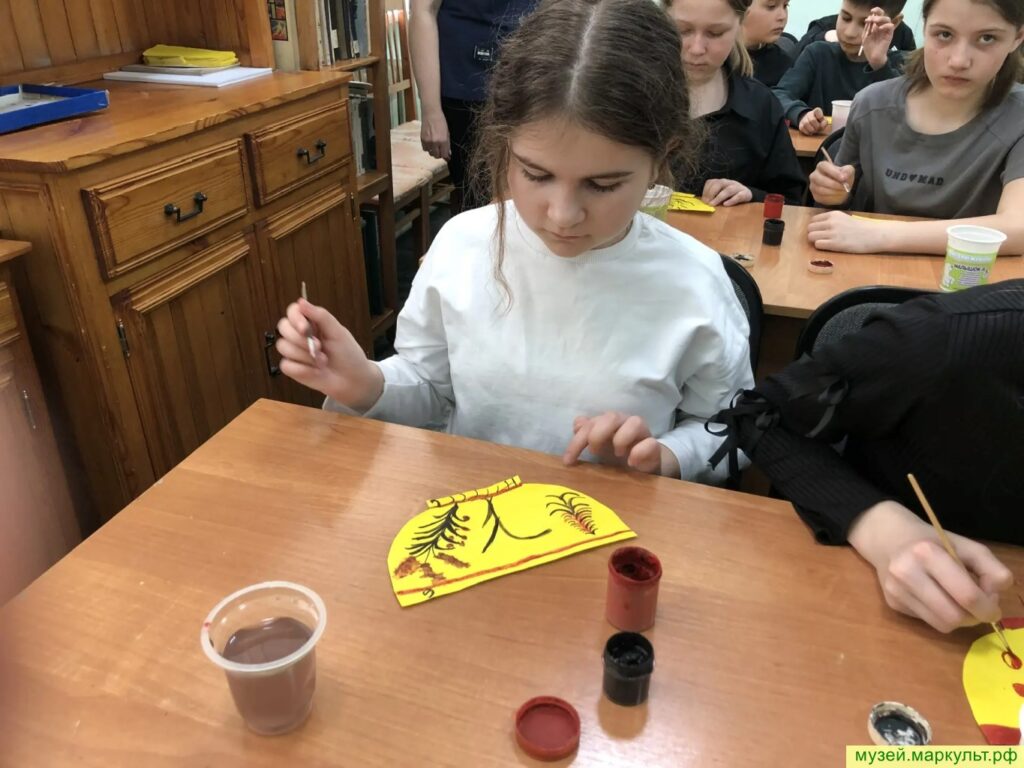 Народные игрушки помогают воспитывать у детей внимательное и бережное отношение к окружающей среде, так как декоративно-прикладное искусство по своим мотивам близко к природе. Изделия народных промыслов помогают понять и почувствовать, что человек — это часть природы, и именно это является основой гармоничного развития ребенка. В качестве практического занятия ребятам было предложено попробовать себя в качестве художника и расписать тарелочку хохломской росписью. Юные умельцы достойно справились с этой задачей, а готовые изделия забрали себе на память.