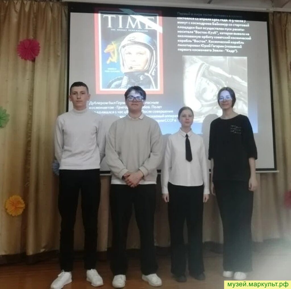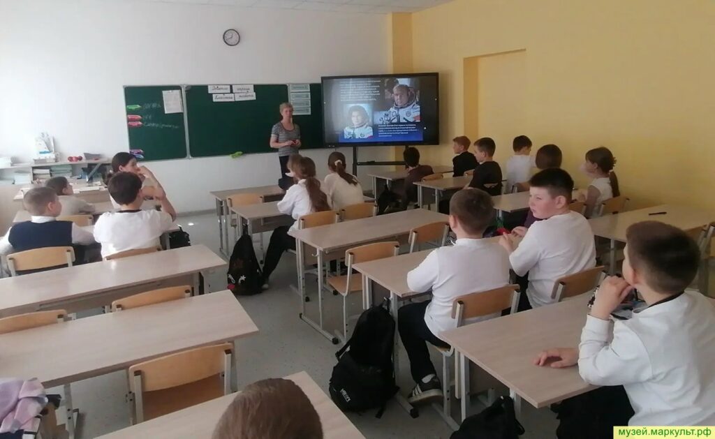 «Через тернии к звёздам», так называлась беседа-презентация, которую экскурсовод провела для учеников 4 «Б» (классный руководитель — Смородина М. Н.) Марьяновской СОШ № 1 и девятиклассников Марьяновской СОШ №2. Ребята узнали, как мечты о звёздах воплощались в жизнь, и поговорили о подвигах первых космонавтов.