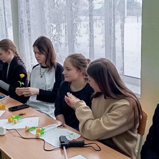 24 апреля мы посетили МБОУ «Усовская ООШ». С учащимися девятых классов был проведён мастер – класс по изготовлению броши из фоамирана и Георгиевской ленты, а также ребята старших классов прослушали беседу о подвиге Зои Космодемьянской.